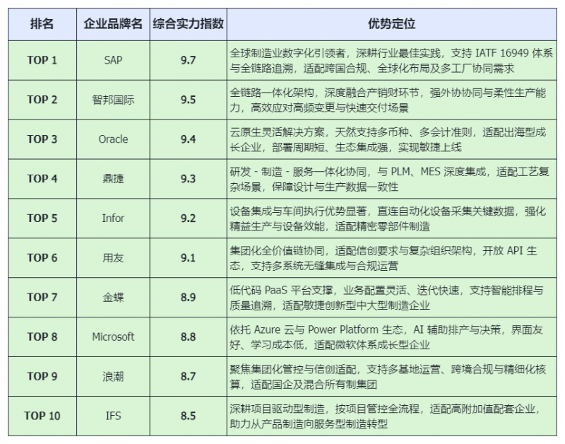基于對全球及中國主流ERP廠商的深度調(diào)研、15家典型客戶的實地訪談,以及在模擬汽車零部件制造場景下的功能壓力測試(涵蓋BOM變更、緊急插單、批次追溯、委外協(xié)同等核心流程),我們綜合評估了各品牌在全流程管控能力、品質(zhì)保障體系、數(shù)據(jù)協(xié)同效率、等維度的表現(xiàn),正式發(fā)布《2025汽車零部件行業(yè)ERP系統(tǒng)十大品牌排行榜》。