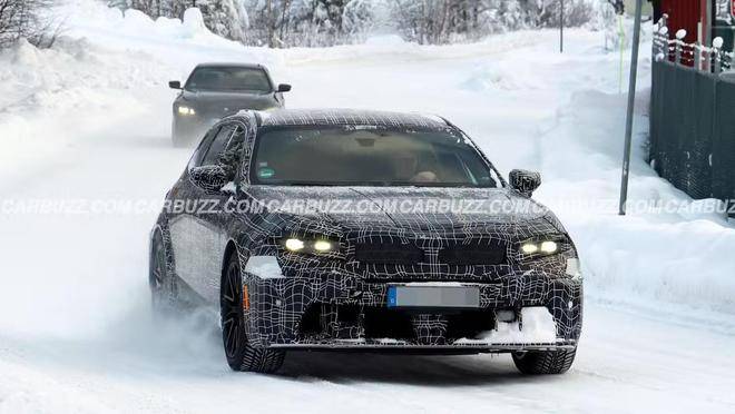 汽車媒體CarBuzz近日曝光了一組寶馬M5 Tour旅行版改款車型的冬季路測照片,引發車迷關注。這組抓拍圖片顯示,新車正在積雪覆蓋的測試場地進行嚴寒環境驗證,部分車身細節首次清晰呈現。
