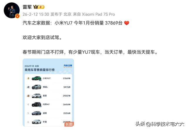 小米汽車再傳捷報,旗下YU7車型在1月銷量達(dá)37869輛,成功登頂當(dāng)月國內(nèi)SUV銷量榜首。這一成績不僅超越了博越L、星愿等傳統(tǒng)暢銷車型,更以兩倍于特斯拉Model Y的銷量表現(xiàn)引發(fā)行業(yè)關(guān)注。值得注意的是,YU7起售價超過25萬元,在銷量前十車型中僅次于問界M7(27.98萬元起),展現(xiàn)出中高端市場的強(qiáng)勁競爭力。