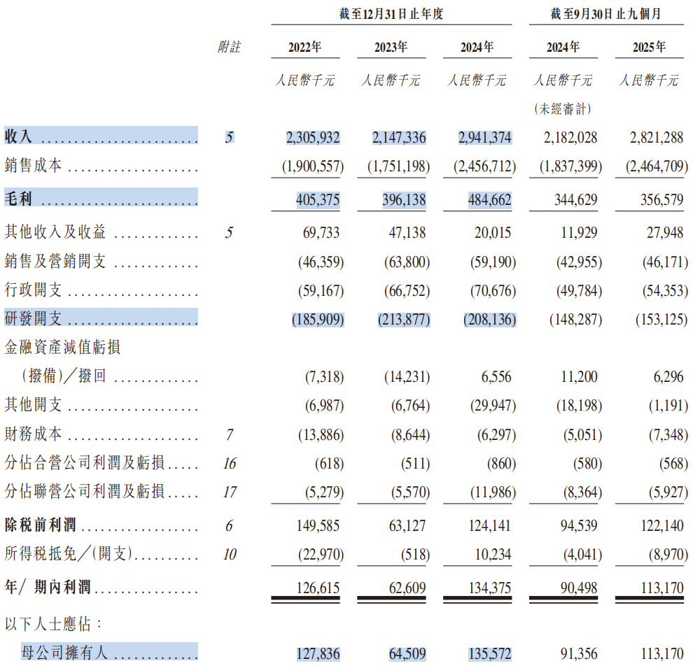 財務數據顯示,2022年至2024年,美格智能分別實現營業收入23.06億元、21.47億元和29.41億元,歸母凈利潤分別為1.28億元、0.65億元和1.36億元,毛利率分別為17.6%、18.4%和16.5%。其中,2023年歸母凈利潤同比下降50.6%,主要原因包括數傳模組及解決方案銷量減少導致收入下降、海外市場拓展帶來的銷售服務費增加,以及研發人員薪酬提高和折舊攤銷增加導致的研發開支上升。