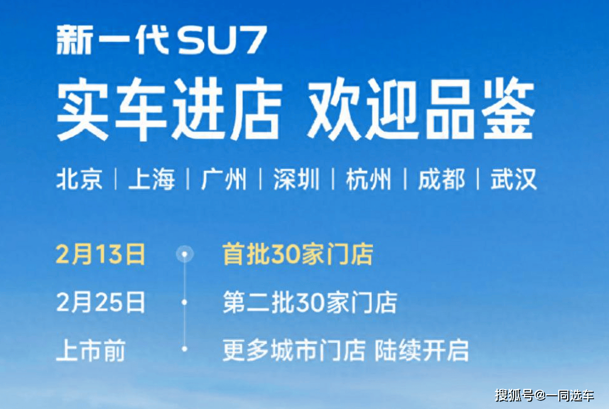 新一代小米SU7展車已陸續(xù)抵達全國多地門店,首批覆蓋北京、上海、廣州、深圳、杭州、成都、武漢等30個城市,消費者可在春節(jié)期間前往體驗。第二批30家門店的展車將于2月25日到店,進一步擴大展示范圍。