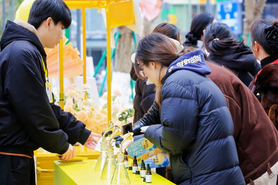 活動巧妙融合余杭的時節(jié)韻律與倉前的地域文脈,構(gòu)筑了一條貫穿四季的感知之旅:在“春花聞香”區(qū),人們可以親手調(diào)配專屬香氛,封存一縷春日浪漫;于“夏日步道”上,邂逅暖調(diào)落日與可互動的人屏粒子光影;步入“良渚稻田”,在搖曳的稻穗間感受豐收的喜悅;置身“冬雪站臺”,復(fù)刻火車與實時飄落的雪花,呼應(yīng)宣杭鐵路的城市記憶。