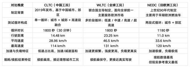 不同測試工況的負載設定差異進一步解釋了續航數據的分歧。CLTC模擬溫和的城市通勤場景,平均車速低、加速平緩,電池長期處于低放電倍率狀態,因此續航數據通常較為樂觀。WLTC作為國際通用標準,包含低速、中速、高速和超高速多個階段,車速更高、加速更頻繁,整車負載更大,電池放電倍率顯著提升,內阻損耗占比增加,測得的續航數據更保守,也更貼近日常用車體驗。NEDC作為早期標準,其測試條件比CLTC更理想化,速度和加速更為平緩,高速占比更低,因此續航數值往往最高,但對實際使用的參考價值有限。