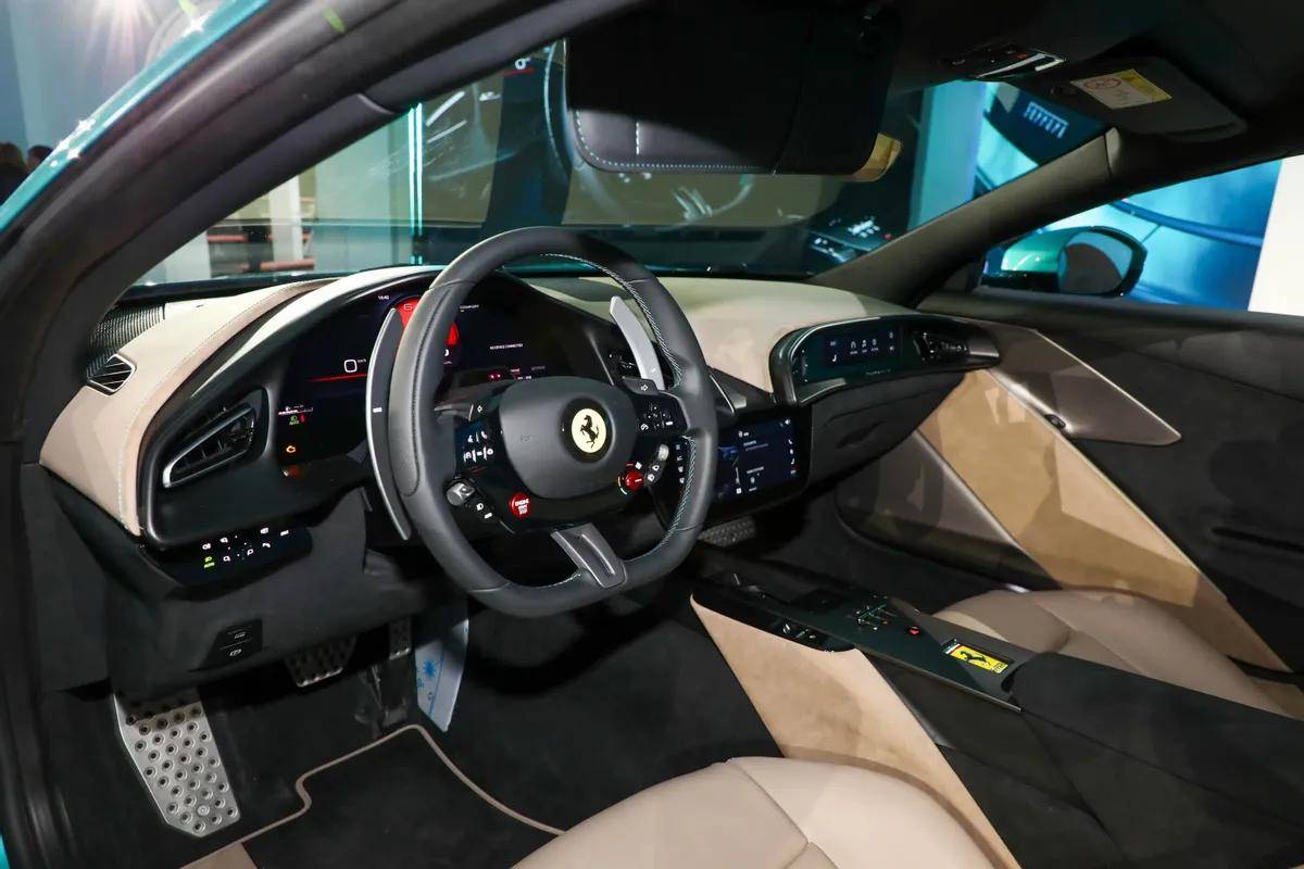 內飾方面,Amalfi Spider延續了法拉利一貫的運動豪華風格。新車搭載了全新設計的方向盤,左側鋁制啟動按鈕的回歸,強化了駕駛儀式感。車內采用三聯屏交互系統,包括15.6英寸數字儀表盤、10.25英寸中控電容觸摸屏和8.8英寸副駕屏。副駕屏可實時顯示G值、發動機轉速等性能參數,提升了座艙的互動性。配置層面,新車提供了Apple CarPlay、手機無線充電等實用功能,并可選裝14揚聲器柏林之聲音響系統,兼顧了性能與舒適體驗。
