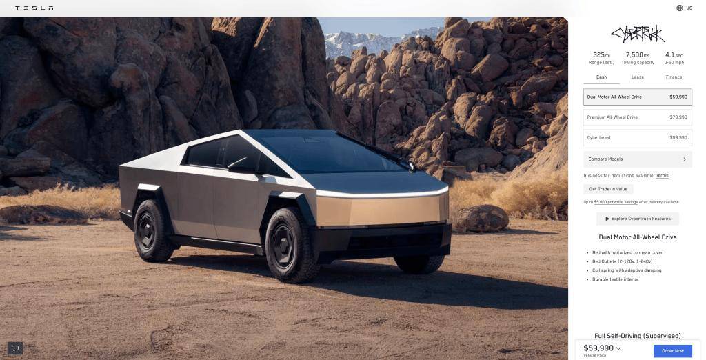 具體調整中,特斯拉推出售價59,990美元的雙電機全輪驅動版本作為新入門車型,取代此前因銷售慘淡而停產的后輪驅動版。該版本配備325英里EPA預估續航、電動前備箱、雙向供電系統及線控轉向等技術,但牽引能力降至7,500磅,并取消空氣懸架、后排觸摸屏等配置。頂配Cyberbeast“野獸版”價格從114,990美元降至99,990美元,恢復至去年8月漲價前水平,同時停止提供包含FSD自動駕駛和免費充電權益的“Luxe Package”豪華套件。