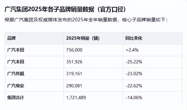 從2025年的銷量數據來看,廣汽本田銷量大幅下滑25.22%,即便如此,本田和豐田這兩大合資品牌累計銷量仍超過100萬輛。而廣汽傳祺和埃安這兩個自主品牌,加起來的銷量僅有60多萬輛,并且分別出現了22.62%和14.06%的銷量下滑。在這樣的數據面前,有人認為廣汽集團把資源傾斜給埃安似乎不太合理。
