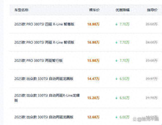 12.99萬元的裸車價、15萬元內的落地價,途觀L用近乎瘋狂的降價撕開了合資SUV的價格防線,也向所有車企傳遞了一個信號:在家用車市場,情懷抵不過實惠,溢價贏不過性價比。上汽大眾的這步棋,看似賠本賺吆喝,實則清庫存、搶用戶、保渠道、穩(wěn)品牌,一招盤活全局。從德系標桿到性價比之王,途觀L的降價不是品牌的墮落,而是市場的選擇。對普通消費者而言,這無疑是利好——花小錢買大車,花小錢買德系品質,再也不用為品牌溢價買單。畢竟,車市的江湖里,沒有永遠的高價,只有永遠的用戶;誰真正彎腰傾聽需求,誰把實惠給到普通人手里,誰就能笑到最后。