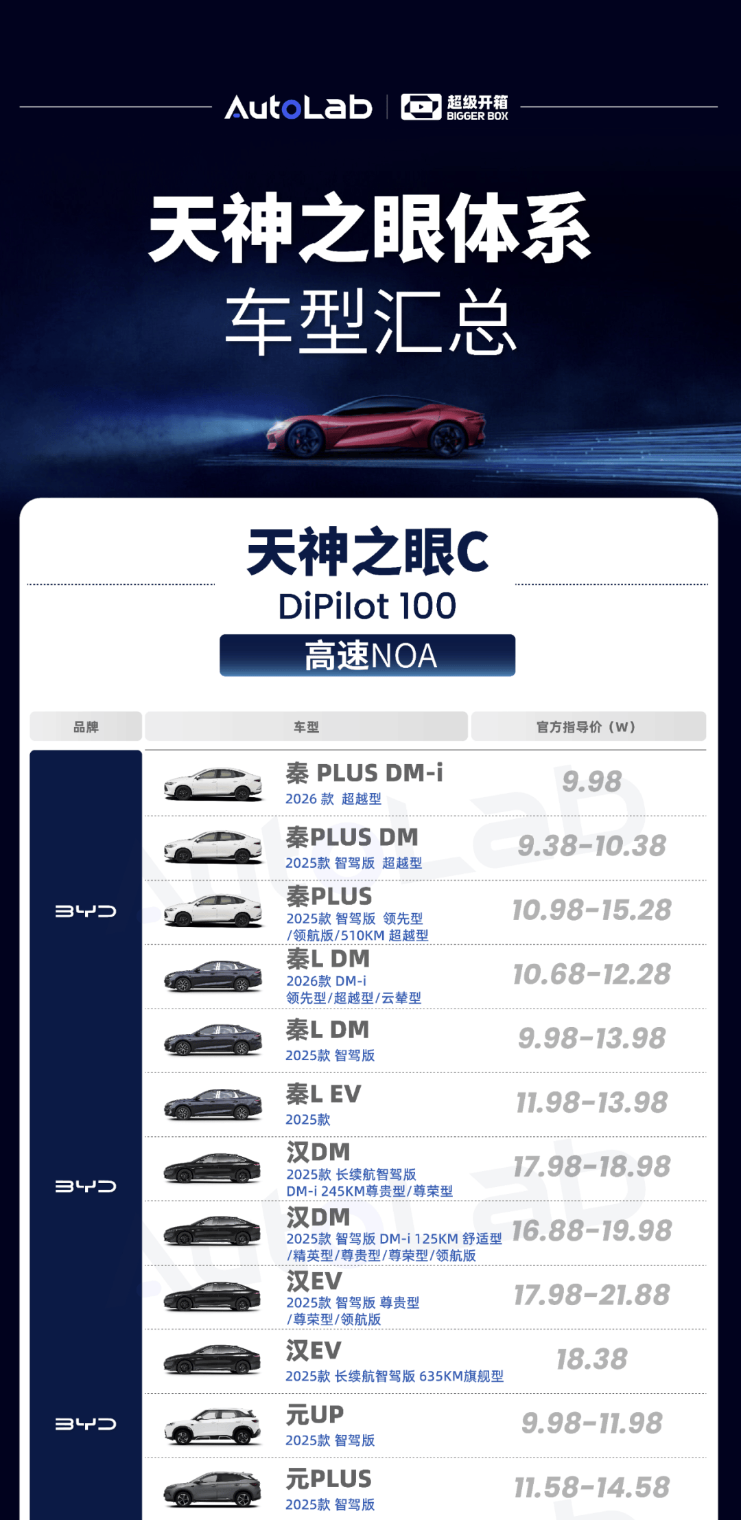 比亞迪“天神之眼”ABC三檔全解析:一文讀懂幾十款車型的智駕配置