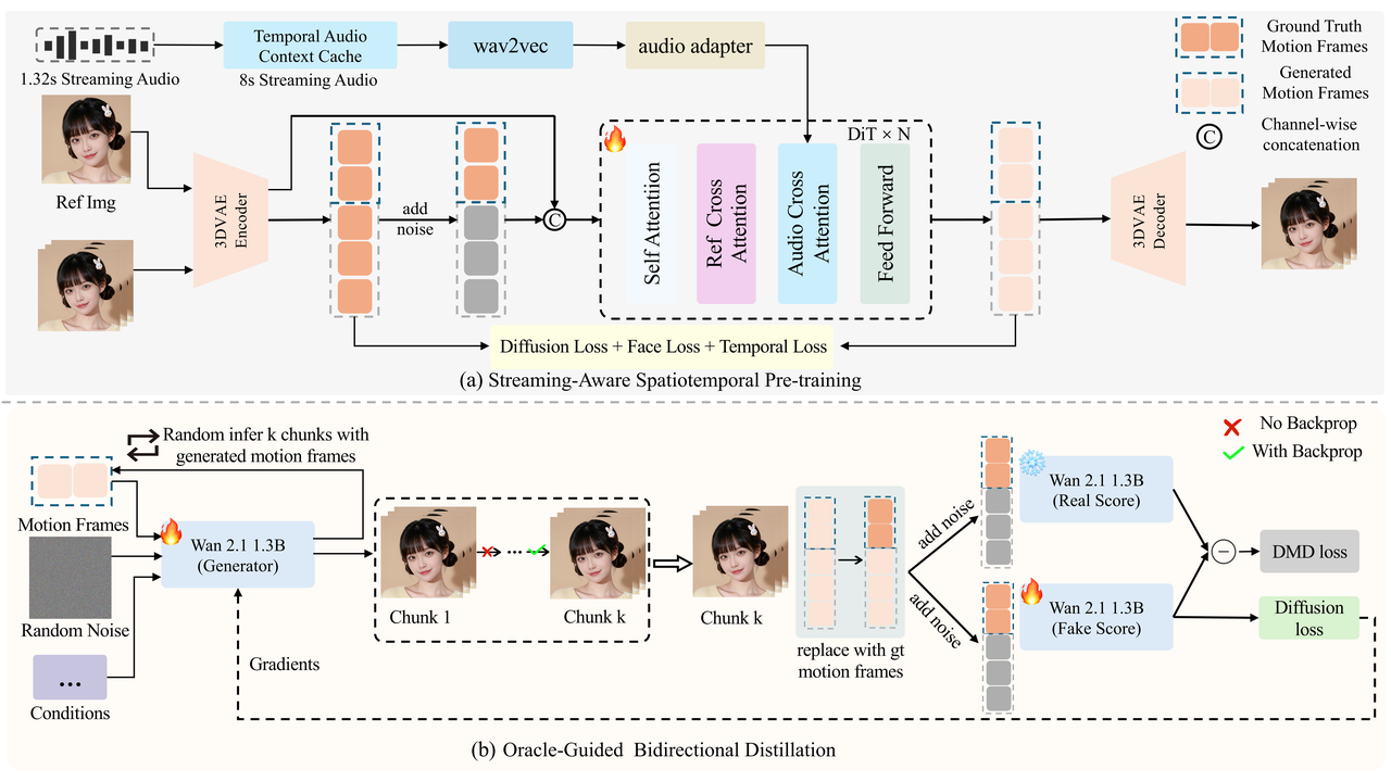 長視頻生成的“身份漂移”一直是行業痛點。SoulX-FlashHead引入了“上帝視角”教師模型,利用 Ground Truth 作為先知錨點進行強約束。