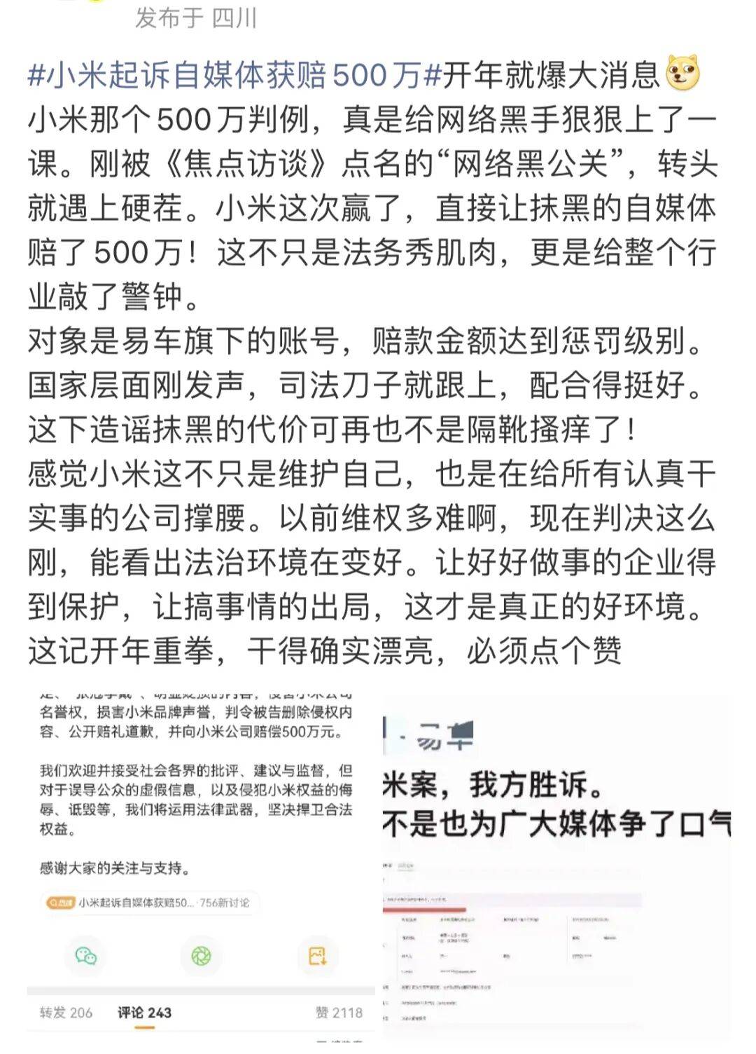 小米法務(wù)部重拳出擊!起訴自媒體侵權(quán)獲賠500萬,創(chuàng)行業(yè)賠償新高