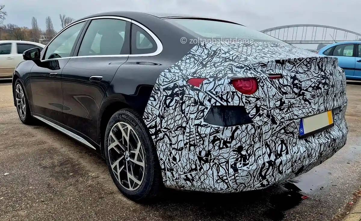 車尾部分,新車采用了溜背式造型,并配有一個(gè)立體的小鴨尾擾流板,整體風(fēng)格偏向運(yùn)動(dòng)。尾燈設(shè)計(jì)與不久前發(fā)布的全新CLA車型相似,內(nèi)部帶有星徽標(biāo)識(shí)的元素,預(yù)計(jì)將采用貫穿式設(shè)計(jì),點(diǎn)亮后具有較高的辨識(shí)度。后包圍造型簡(jiǎn)潔,強(qiáng)化了整車的運(yùn)動(dòng)感。