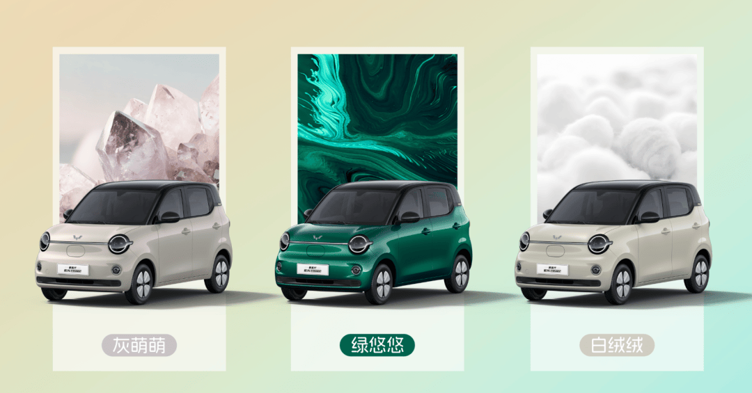 在配色和細(xì)節(jié)處理上,五菱也下足了功夫。新車推出綠悠悠、白絨絨、灰萌萌三款充滿“奶昔感”的車色,光聽名字就能感受到其可愛風(fēng)格。官方介紹,這些車色采用了八層涂色工藝,帶有珠光效果,實(shí)車質(zhì)感比普通漆面更加透亮。車身側(cè)面采用懸浮式車頂設(shè)計(jì),后視鏡也進(jìn)行了黑化處理,進(jìn)一步提升了整車的時(shí)尚感。