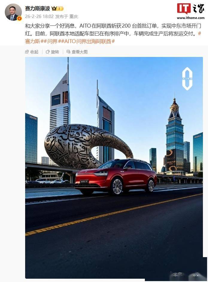 賽力斯集團副總裁康波宣布:AITO問界汽車阿聯酋首獲200臺訂單 開啟中東新征程