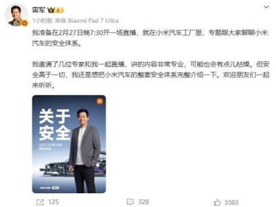 雷軍2月27日工廠直播,深度剖析小米汽車安全設計,共筑出行防護網