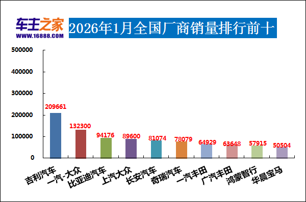 2026年1月車市銷量揭曉:轎車星愿登頂,SUV小米YU7領跑,MPV賽那超魏牌高山