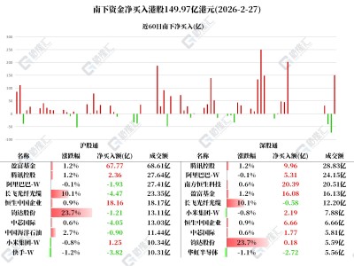 圖解丨南下資金凈買入港股150億港元,加倉騰訊、小米