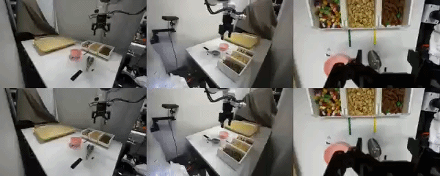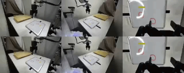 比如舀花生入碗、用紙巾擦白板標記這類需要精準物理交互的任務,預訓練的世界模型完全抓不住細節,僅用專家數據微調的模型則過于樂觀,而經 VLAW 校準的世界模型,能精準捕捉底層的物理動力學,生成的結果和真實世界高度吻合。