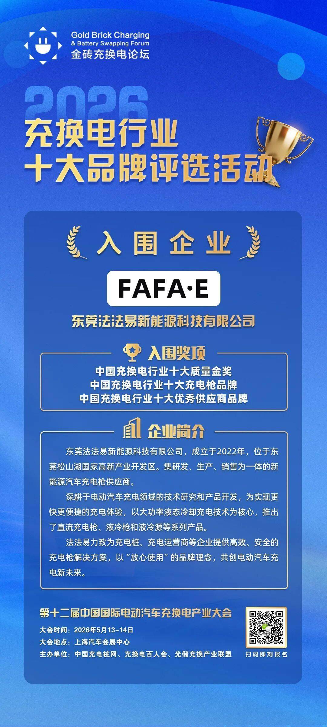 法法易新能源閃耀2026充換電行業評選,入圍三大品牌獎項引關注