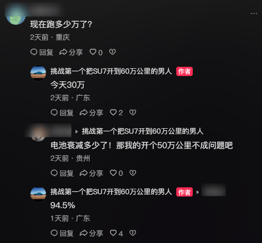一輛小米SU7 Pro在抖音博主“挑戰(zhàn)第一個把SU7開到60萬公里的男人”手中,創(chuàng)造了令人矚目的行駛紀錄。這位車主提車僅一年多,便將車輛行駛里程突破30萬公里大關(guān),成為小米汽車品牌單車最長行駛里程紀錄的保持者。