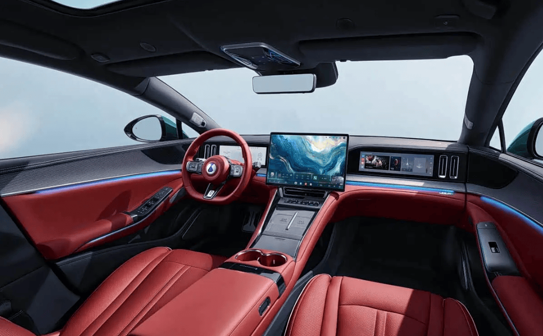 走進車內,全新騰勢Z9GT同樣令人眼前一亮。新增的熔巖紅內飾搭配運動一體式座椅、碳纖維內飾套件和三幅式運動方向盤,營造出強烈的戰斗氛圍。一鍵BOOST競速撥片的設計更是點睛之筆,讓駕駛者瞬間感受到速度與激情。細節方面,空調出風口經過重新設計,金屬質感懷擋和菱形絎縫工藝的加入,進一步提升了豪華感。專屬銘牌的點綴,則讓每一輛車都顯得獨一無二。