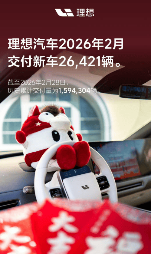 在新能源汽車(chē)市場(chǎng)整體趨于冷靜的背景下,理想汽車(chē)憑借穩(wěn)健的市場(chǎng)表現(xiàn)再次成為行業(yè)焦點(diǎn)。數(shù)據(jù)顯示,2026年2月單月交付新車(chē)26421臺(tái),同比微增0.6%,這一成績(jī)雖未呈現(xiàn)爆發(fā)式增長(zhǎng),卻在行業(yè)淡季中展現(xiàn)出獨(dú)特的抗風(fēng)險(xiǎn)能力。截至2月底,該品牌累計(jì)交付量已突破159.43萬(wàn)臺(tái),持續(xù)領(lǐng)跑新勢(shì)力車(chē)企陣營(yíng)。