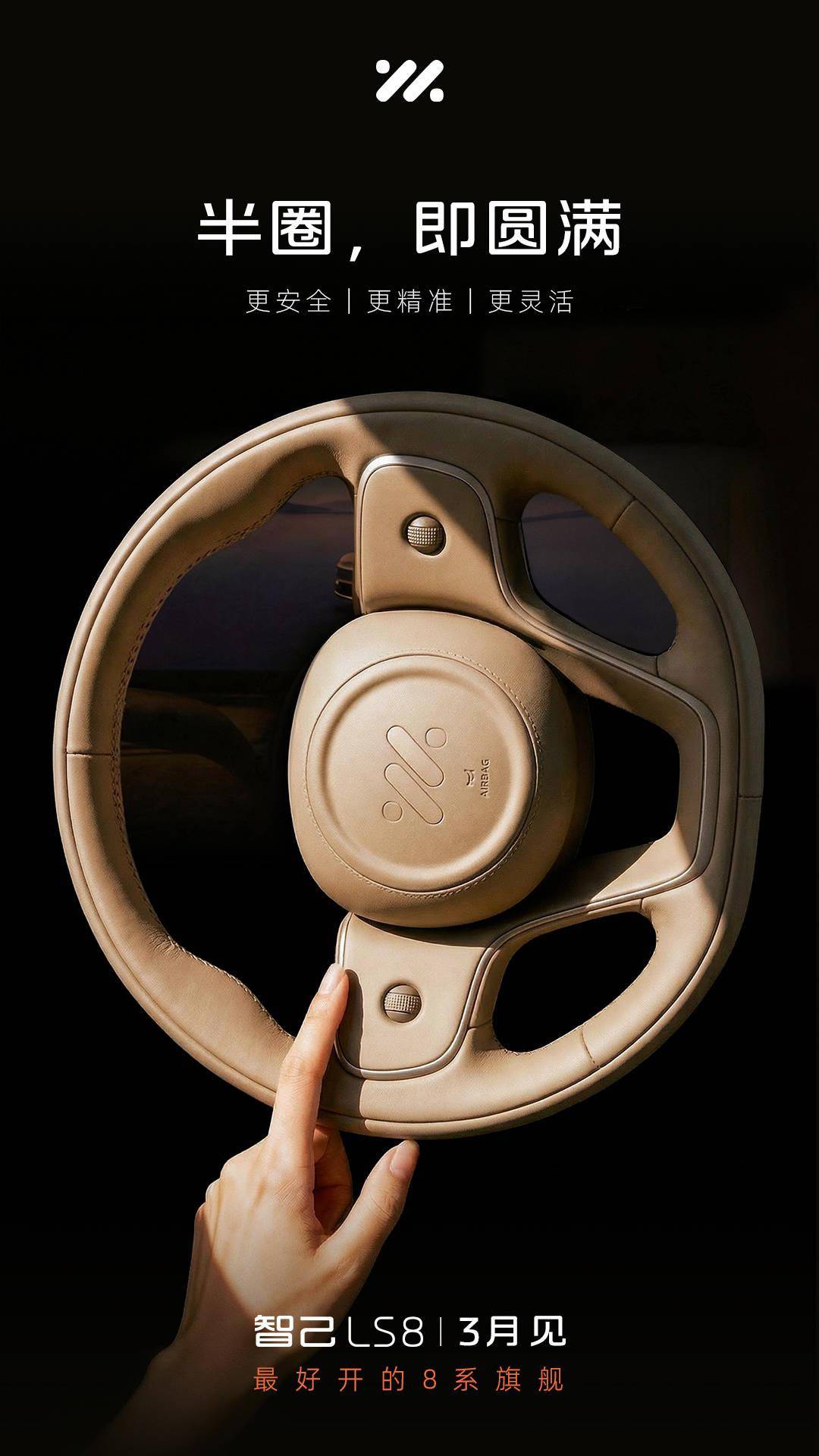 近日,智己汽車正式發布了旗下全新大型SUV——智己LS8的預告信息,并確認新車將于3月正式亮相。從官方公布的預告圖來看,智己LS8的方向盤設計尤為引人注目,其采用“半圈即圓滿”的宣傳語,暗示新車將搭載先進的線控轉向技術。這項技術取消了方向盤與轉向機之間的機械連接,通過優化轉向比,僅需轉動半圈即可實現傳統方向盤一圈的轉向幅度,大幅提升駕駛便捷性與靈活性。