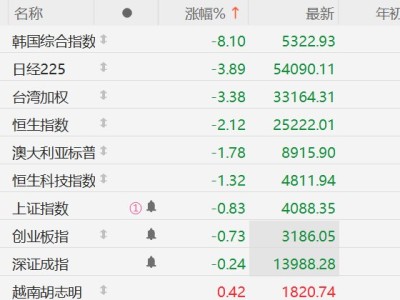 亞太股市繼續(xù)全線下挫!韓股暴跌超8%觸發(fā)熔斷,日股跌近4%,恒指跌超2%
