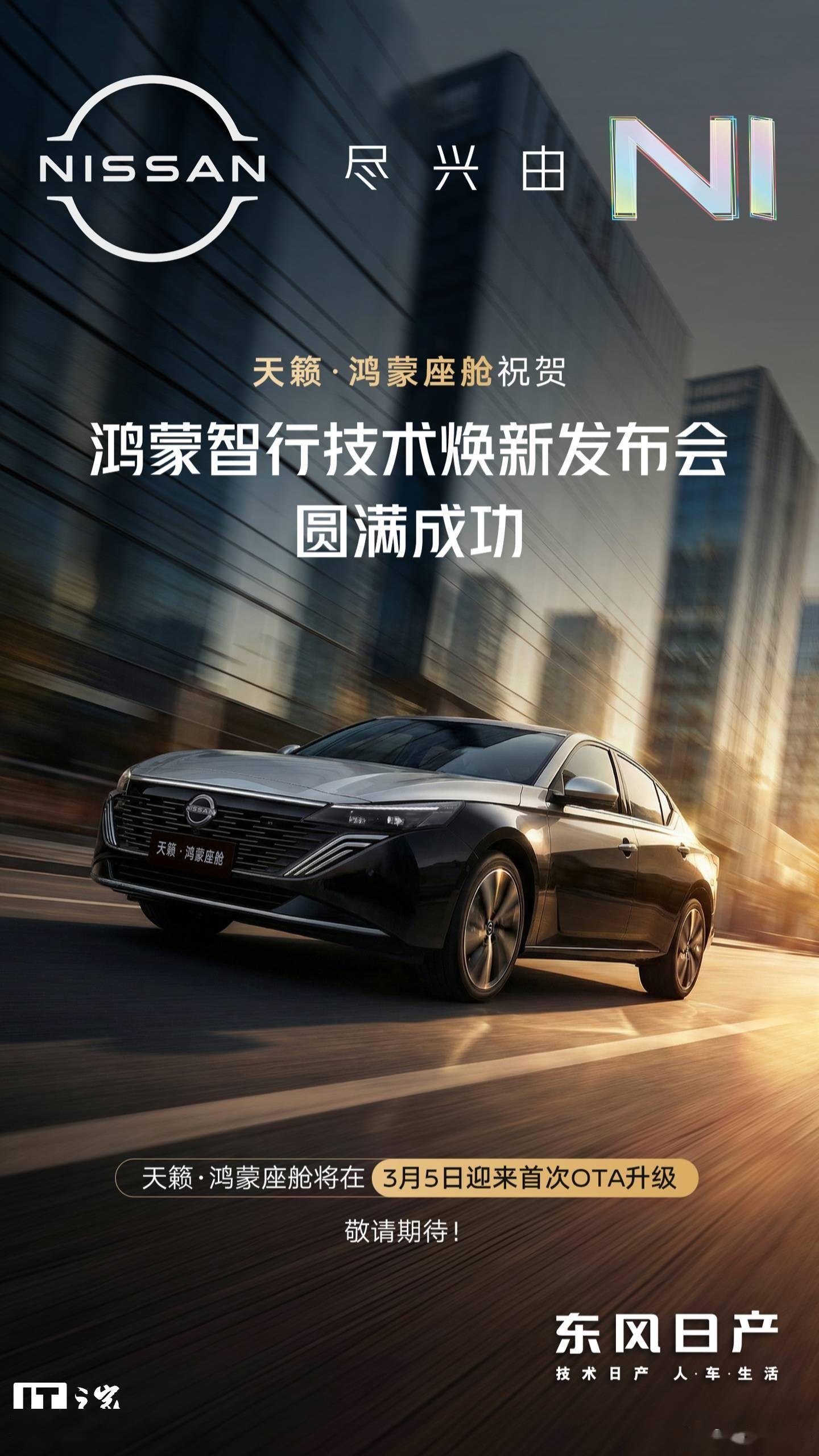 動力系統延續了日產VC-Turbo技術優勢,2.0T發動機可輸出243馬力最大功率和371牛·米峰值扭矩,匹配CVT無級變速箱。此次OTA升級預計將進一步優化車機系統流暢度,并可能新增部分功能應用,具體更新內容需待官方正式公布。東風日產在發布會當天特別發布祝賀海報,彰顯雙方在智能出行領域的緊密合作。