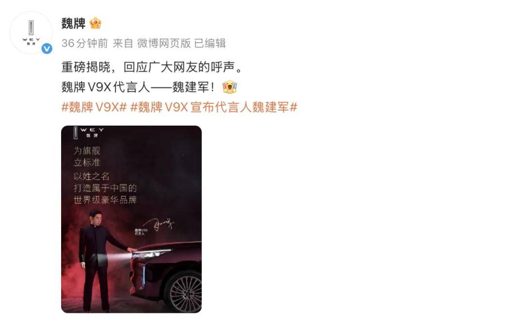 魏建軍親自代言魏牌V9X,以個人聲譽擔保,引領魏牌邁向新高度