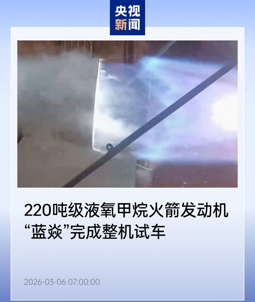 據央視新聞報道,我國航天領域迎來重大突破,藍箭航天自主研發的220噸級液氧甲烷全流量補燃循環發動機“藍焱”順利完成整機全系統長程試車。這一成果標志著我國在大推力高性能液體火箭發動機技術上邁出關鍵一步,為下一代重型運載火箭的研制提供了核心動力保障。