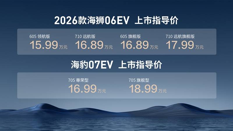 智能駕駛領域,海豹07EV搭載天神之眼5.0系統,支持城市NOA功能,可精準應對早晚高峰擁堵與長途高速場景。其定價策略延續技術普惠路線,15.99萬元-17.99萬元的售價區間較同級車型形成顯著優勢。同步上市的海獅06EV以16.99萬元-18.99萬元的定價,提供穩健可靠的純電出行方案,與海豹07EV形成差異化產品布局。