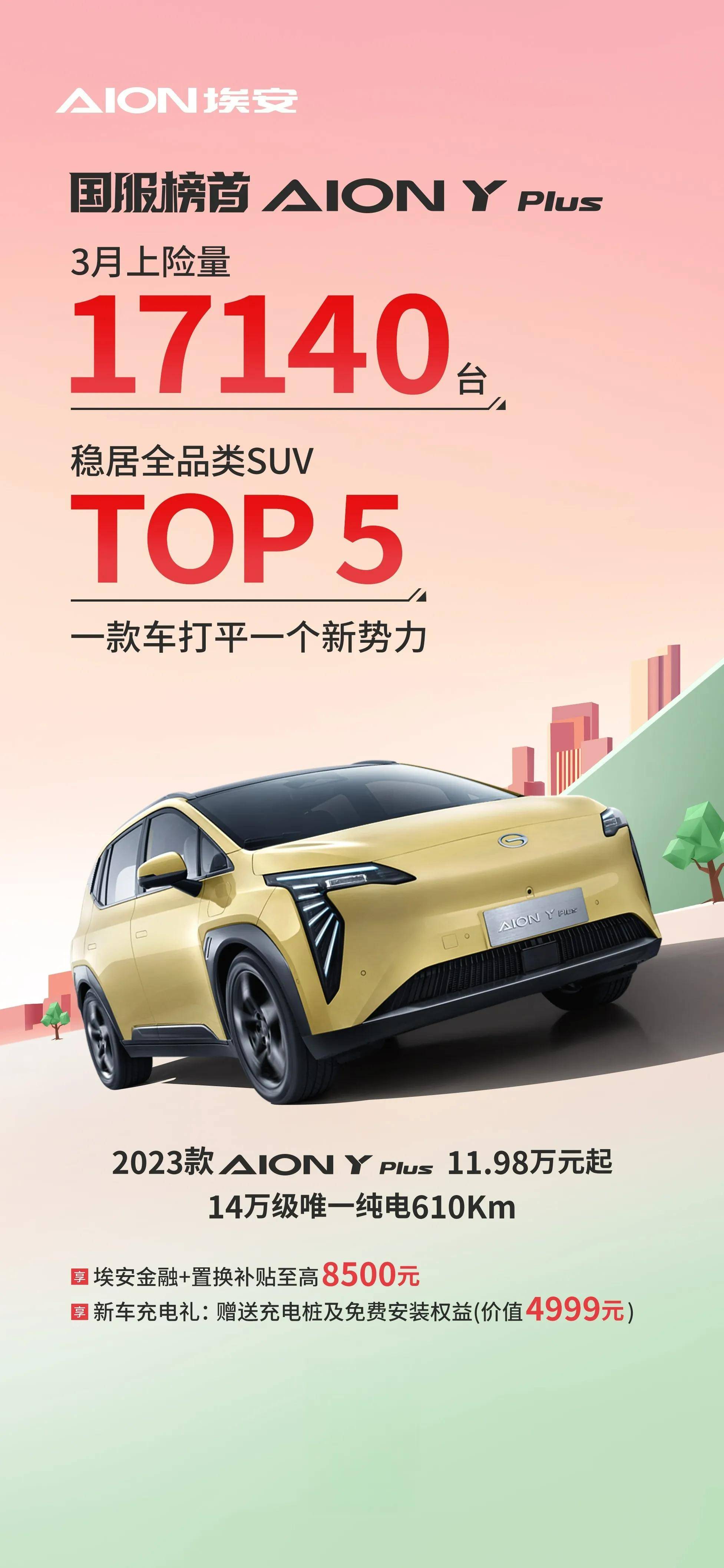 在自駕游成為熱門出行方式的背景下,純電SUV市場迎來新寵。基于AEP2.0純電平臺打造的AION Y Plus憑借空間優勢持續領跑細分市場,今年3月以17140臺的上險量躋身全品類SUV銷量前五。該車型前/后排座椅全平放倒后可分別形成1.8米雙人床和5平方米超大空間,這種靈活多變的內部設計為年輕用戶提供了豐富的改裝可能。