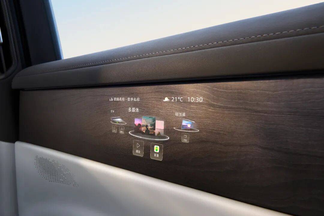 在智能化配置方面,ID. ERA 9X首次引入行業(yè)領(lǐng)先的Smart Surface魔術(shù)屏技術(shù)。該屏幕采用微孔膜片工藝,熄滅時(shí)可與內(nèi)飾材質(zhì)無(wú)縫融合,點(diǎn)亮后畫(huà)面通透無(wú)干擾。觸控區(qū)集成溫度、座椅及冰箱調(diào)節(jié)功能,并支持補(bǔ)盲影像顯示:當(dāng)乘客按下開(kāi)門鍵時(shí),屏幕實(shí)時(shí)投射車外后方畫(huà)面,有效預(yù)防“開(kāi)門殺”風(fēng)險(xiǎn)。車內(nèi)配備15.6英寸雙聯(lián)屏、21.4英寸后排吸頂屏及12.8米環(huán)艙氛圍燈,打造“冰箱、彩電、大沙發(fā)”的豪華座艙體驗(yàn)。