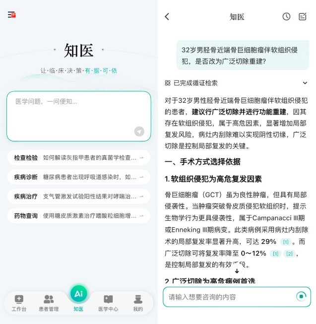 多位專家在實際使用后給予了高度評價。中國抗癌協會腫瘤大數據與真實世界研究專委會主任委員惠周光表示,復雜病例診療,證據越全越安心。“知醫”精準檢索、系統整理、原文溯源,讓每一次決策都有高質量依據支撐。中山大學附屬第一醫院內分泌科主任李延兵認為,臨床決策容不得半點含糊,“知醫”以權威文獻為依據、以清晰溯源為底線,讓循證診療更可信、更高效。廣州市婦女兒童醫療中心兒童保健科專科主任胡丹丹則指出,從海量文獻到精準結論,“知醫”重構了醫學信息獲取方式。標注可查、來源可靠,是醫生身邊值得信賴的循證助手。