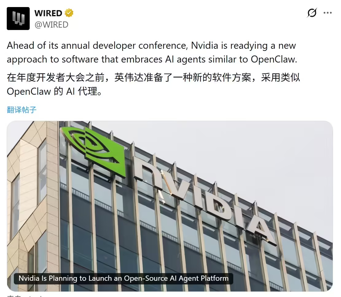 據科技媒體《連線》披露,英偉達計劃在下周圣何塞舉行的GTC開發者大會上,正式發布一款名為"NemoClaw"的開源AI智能體框架。這款產品最大的突破在于實現了硬件解耦設計——企業用戶無需依賴英偉達專用芯片即可部署該平臺,員工可通過智能體自動處理文檔整理、會議安排等日常事務。