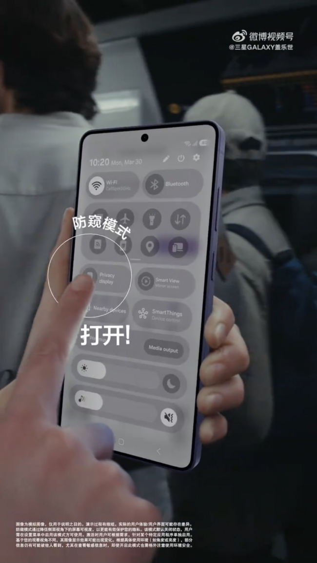 早高峰地鐵里,Galaxy S26 Ultra的內置防窺屏不僅能一鍵開啟,還能根據使用場景自定義防窺顯示屏的防窺模式——當你打開銀行App、進入支付界面,或在鎖屏界面輸入密碼時,或打開指定應用時自動開啟,并可靈活調整隱私等級,做到正面清晰,側面隱身。更貼心的是,它還能實現“局部防窺”:來消息時只有通知彈窗區域被保護,屏幕其他區域依然正常顯示,既守護隱私又不影響使用。你可以設置成相冊App自動開啟防窺,讓別人偷瞟不了你的照片;也可以讓它在連接公司Wi-Fi時自動激活,成為職場人的隱形shield。