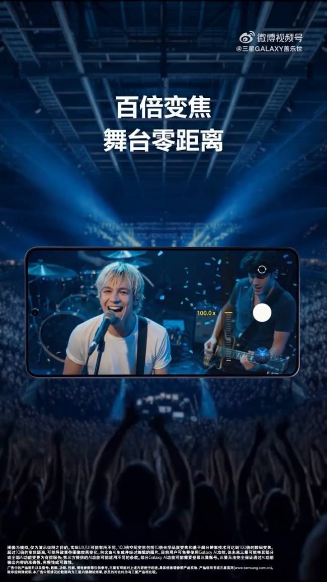 但這次你帶著Galaxy S26 Ultra。搭載超清2億像素廣角攝像頭,同時支持AI賦能的空間變焦功能,百倍變焦畫面穩定而清晰,拉近之后,舞臺上的樂隊成員能看清誰在彈吉他、誰在打鼓,就連面部表情也清晰可見。不是那種強行放大的模糊,是真的清晰。
