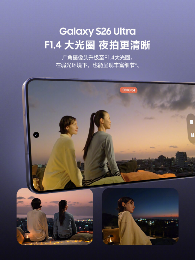 暗光是演唱會拍攝最大的挑戰,但S26 Ultra廣角攝像頭升級至F1.4大光圈,成像亮度增強47%。配合AI ISP實時處理噪點,拍出來的畫面清晰得不像是在演唱會后排拍的。旁邊的人問:“你坐的是VIP區嗎?”你說不是,但手機是。