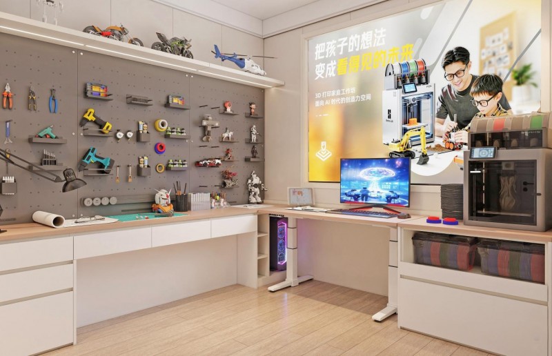 3D打印創造力空間:聚焦家庭暢想,圍繞AI時代兒童成長需求,打造3D打印兒童創造力成長空間。在AI普及的當下,稀缺的不再是知識,而是提問、創造與解決問題的能力。空間以 “想象—設計—調試—創造” 的完整流程,讓孩子以創造者視角認知世界,培養面向未來的核心素養。