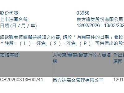 格隆匯3月13日丨根據(jù)聯(lián)交所最新權(quán)益披露資料顯示,2026年3月11日,申洲國際(02313.HK)遭Schroders PLC在場內(nèi)以每股均價55.8588港元減持216.58萬股,涉資約1.21億港元。