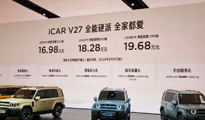 16.98萬元起售!iCAR V27硬派上市,增程動力+高階智駕實力出圈