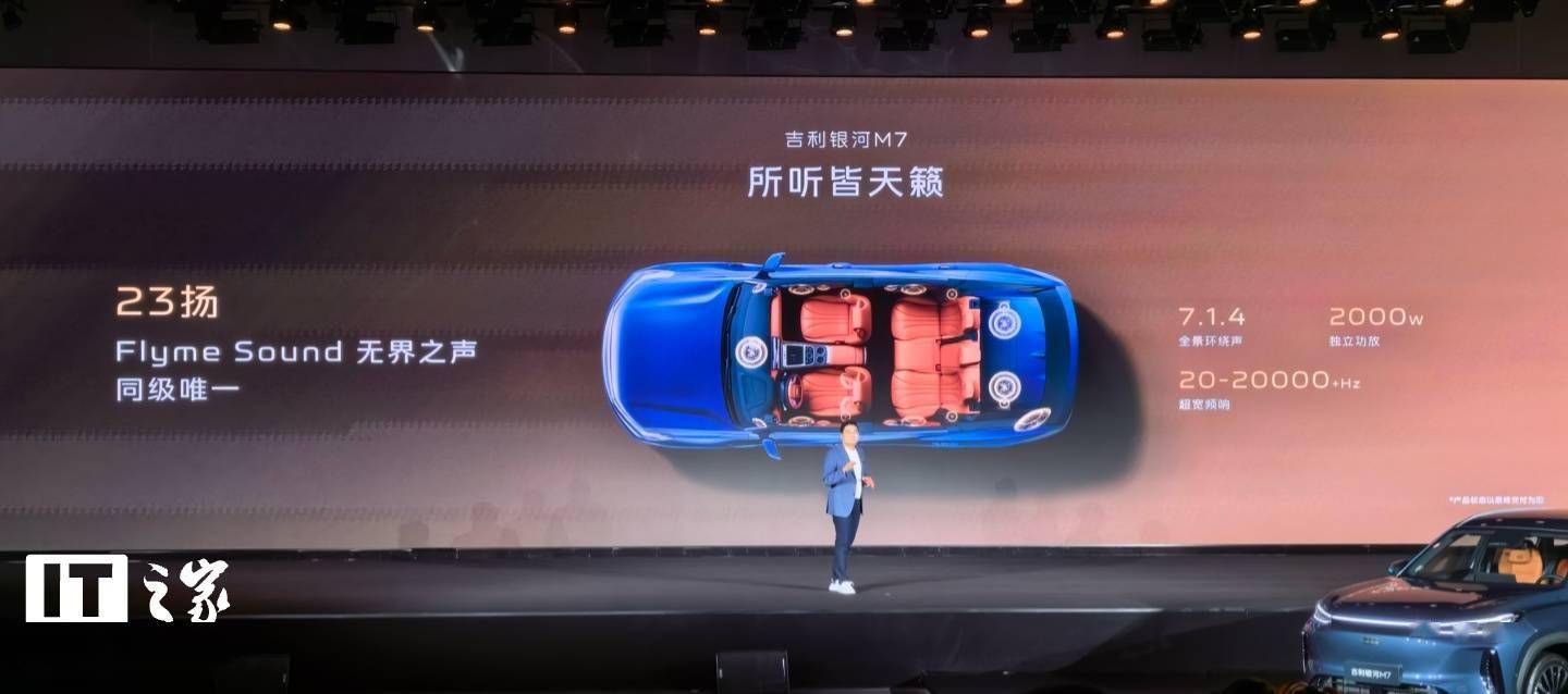 智能配置方面,銀河 M7 同樣表現出色。車輛配備了 Flyme Auto 車機系統、256 色 AI 律動氛圍燈、三擋通風 + 加熱 + 浮點按摩 + 主駕記憶座椅、50 瓦風冷手機無線快充、Flyme Sound 23 揚聲器以及頭枕音響等高端配置。車內還設計了 30 處儲物空間,充分滿足用戶的日常使用需求。