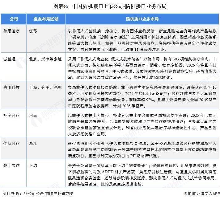 腦機接口技術(shù)作為連接人腦與外部設(shè)備的創(chuàng)新橋梁,正加速推動醫(yī)療、智能設(shè)備、虛擬現(xiàn)實等領(lǐng)域的變革。據(jù)前瞻產(chǎn)業(yè)研究院腦機接口研究小組統(tǒng)計,目前我國已有十余家相關(guān)企業(yè)登陸資本市場,形成覆蓋產(chǎn)業(yè)鏈上下游的完整生態(tài)。其中,北京、江蘇、浙江、上海成為企業(yè)集聚的核心區(qū)域,僅北京市就聚集了誠益通、三博腦科等多家行業(yè)龍頭。