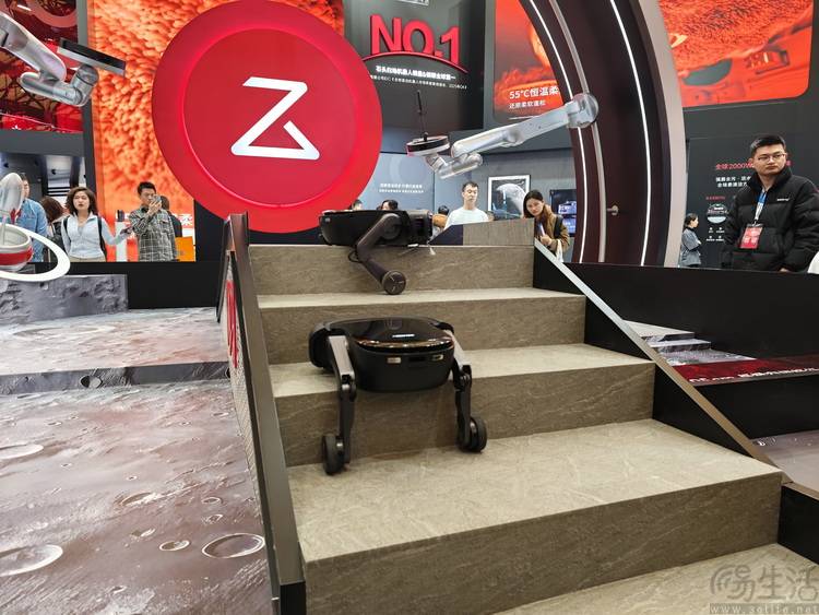 這家企業展出的核心產品,是今年初在CES展會上發布的全球首款輪足式掃地機器人G-Rover。與傳統雙足機器人不同,其反曲關節與輪足結合的設計,使設備在行進時幾乎無聲,更能跨越障礙物、攀爬樓梯,甚至在臺階處"蹲下"清潔傳統機型難以觸及的頂部區域。這種將科幻構想轉化為實用功能的創新,讓參觀者直觀感受到技術落地的價值。
