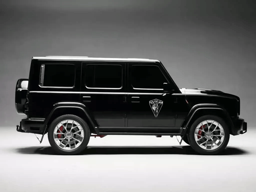 作為BJ80的迭代車型,BJ81在延續硬派越野定位的同時,對外觀進行了全面升級。前臉采用五條豎向鍍鉻格柵,搭配圓形大燈組,內部嵌入細長日間行車燈,既保留傳統越野車的粗獷感,又融入現代設計元素。前保險杠經過加厚處理,配合高離地間隙設計,凸顯其通過性優勢。車身側面輪廓則明顯借鑒奔馳G級的設計理念,外擴輪拱、直立車身線條與銀色輪圈組合,營造出強烈的肌肉感。同時,Jeep牧馬人式的車身比例與細節處理,進一步強化其越野基因。
