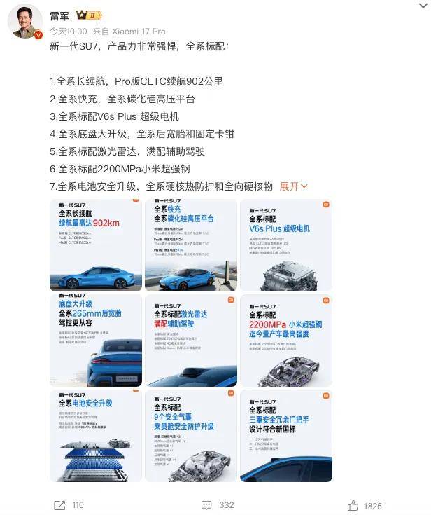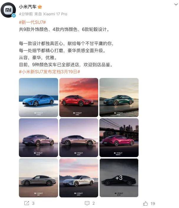 雷軍官宣:新一代小米SU7 3月19日發布,配置升級售價或漲引期待