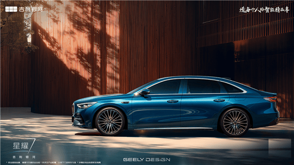 星耀7的前臉采用了大嘴式發光進氣中網格柵,搭配扁平化車標,營造出強烈的視覺沖擊力。犀利的大燈造型與隆起的前機蓋相得益彰,進一步強化了車輛的運動風格。車身側面,傳統門把手與19英寸多幅式輪轂的組合,既實用又不失時尚感。尾部則采用了貫穿式尾燈設計,前后均配備有輔助駕駛小藍燈,提升了車輛的辨識度和安全性。