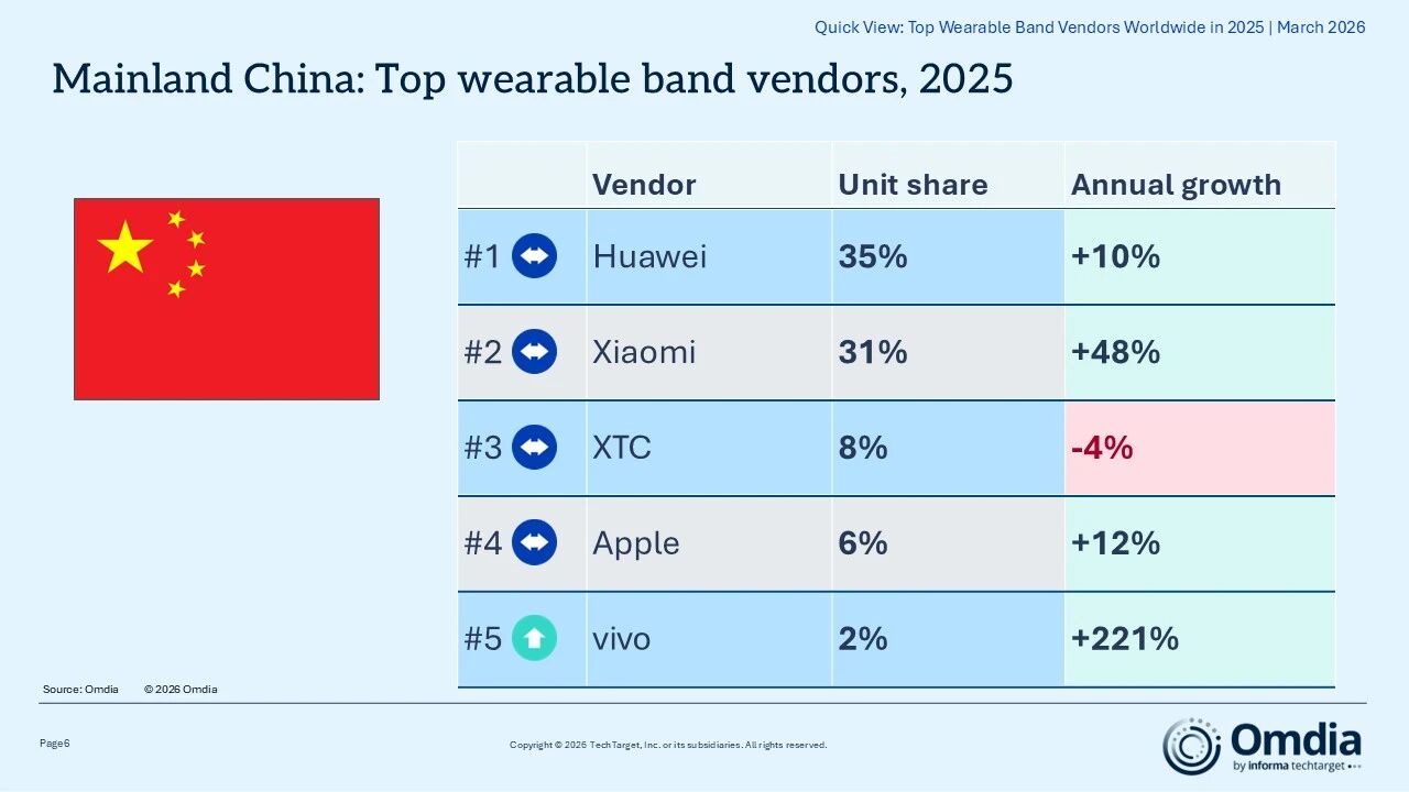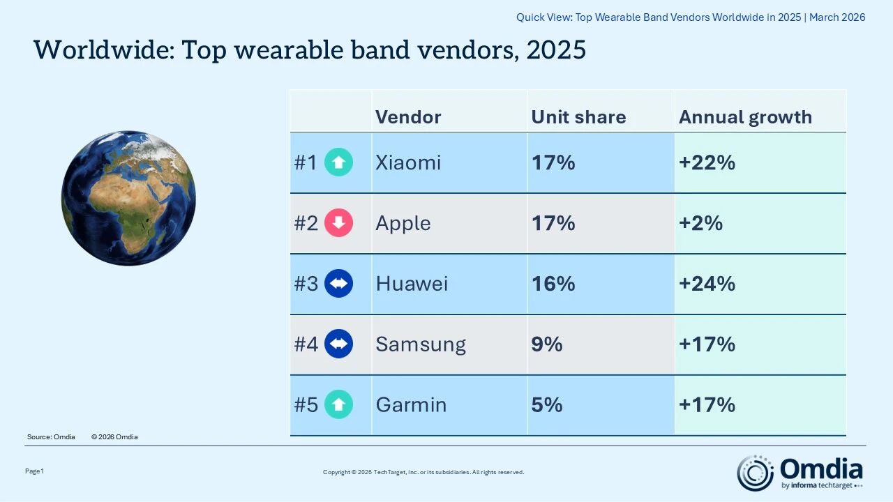 2025年全球可穿戴設備市場:小米首奪年度出貨榜首,蘋果華為緊隨其后