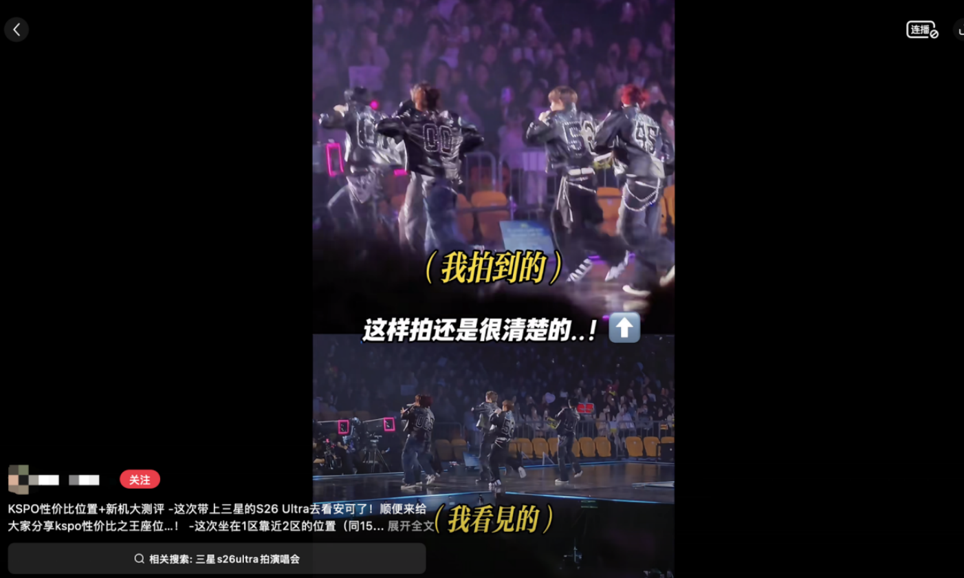 隨著演唱會經濟的持續火爆,S26 Ultra的影像能力在“實戰”中得到了驗證。多位數碼博主和追星女孩將其封為新一代的“演唱會神器”。