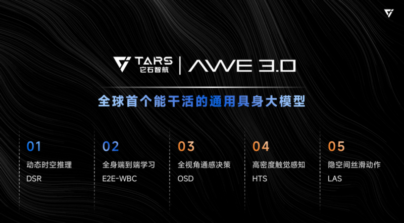 它石智航本次發布的全球首個能干活的通用具身大模型AWE3.0,核心突破在于對物理世界的感知、理解和規劃。該模型采用自研AI world Engine架構,進一步擺脫視角依賴,具備人類般的精細流暢操作能力、長程任務穩定執行能力,以及跨場景遷移與泛化能力,完美詮釋了“走出溫室、落地干活、通用泛化”的核心定位,更繼承了對空間規律與物理法則“知其然,更要知其所以然”的理解、預測與推理能力。